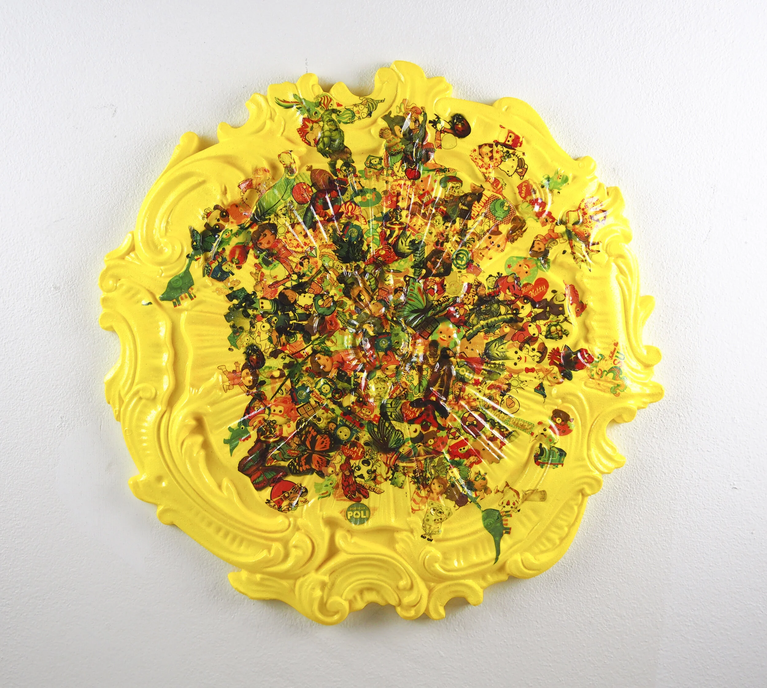 40cm, polystyrene rosette, acrylic paint, temporary tattoos, gloss paint, 2020